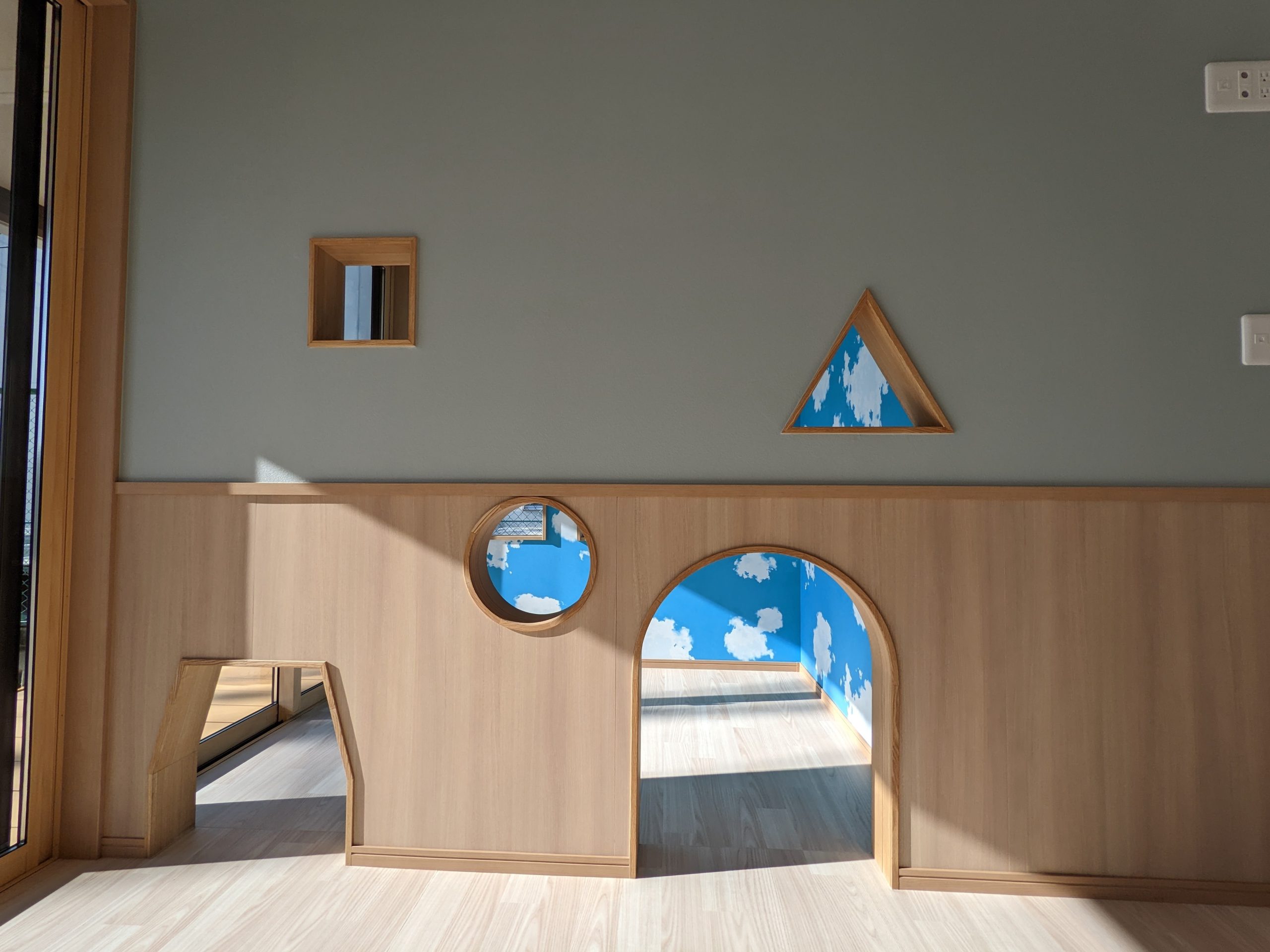 安心・安全はもちろんのこと、日当たり最高、子供たちがいきいきする空間とするための工夫や職人の技が随所にちりばめられた建物となりました。子供たちがどのように遊んで・楽しんでくれるのか当社としても楽しみです。