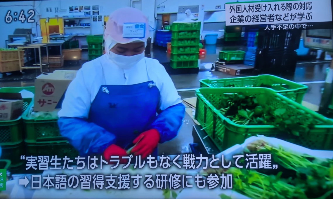 当組合の技能実習生の受け入れ先が、NHKの取材を受けました。