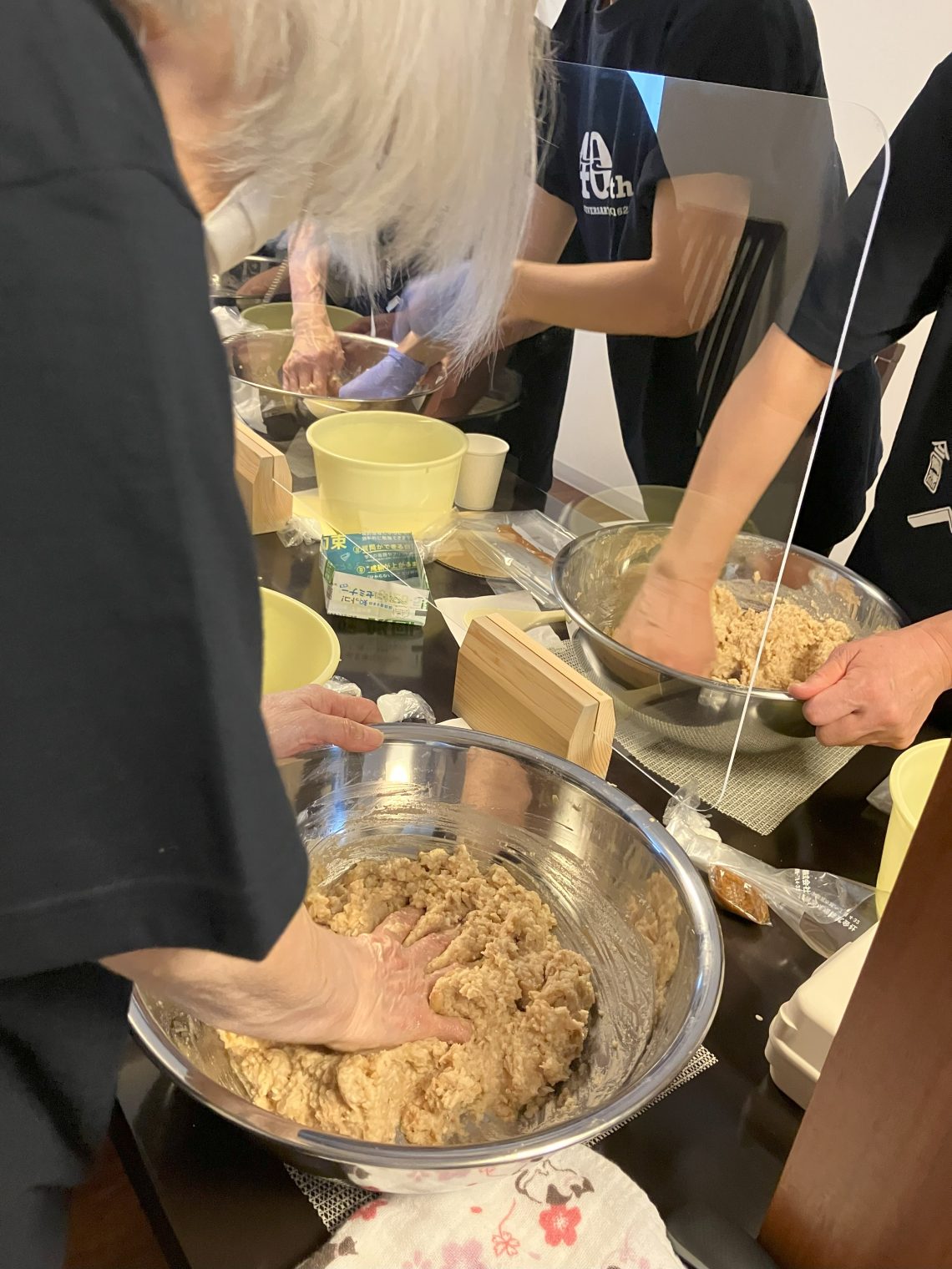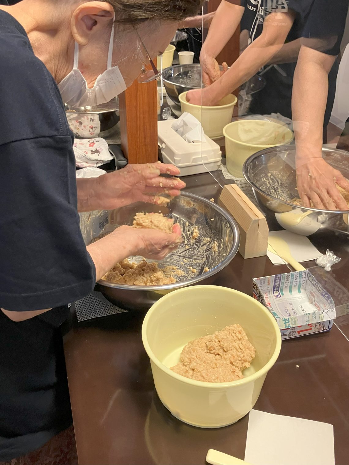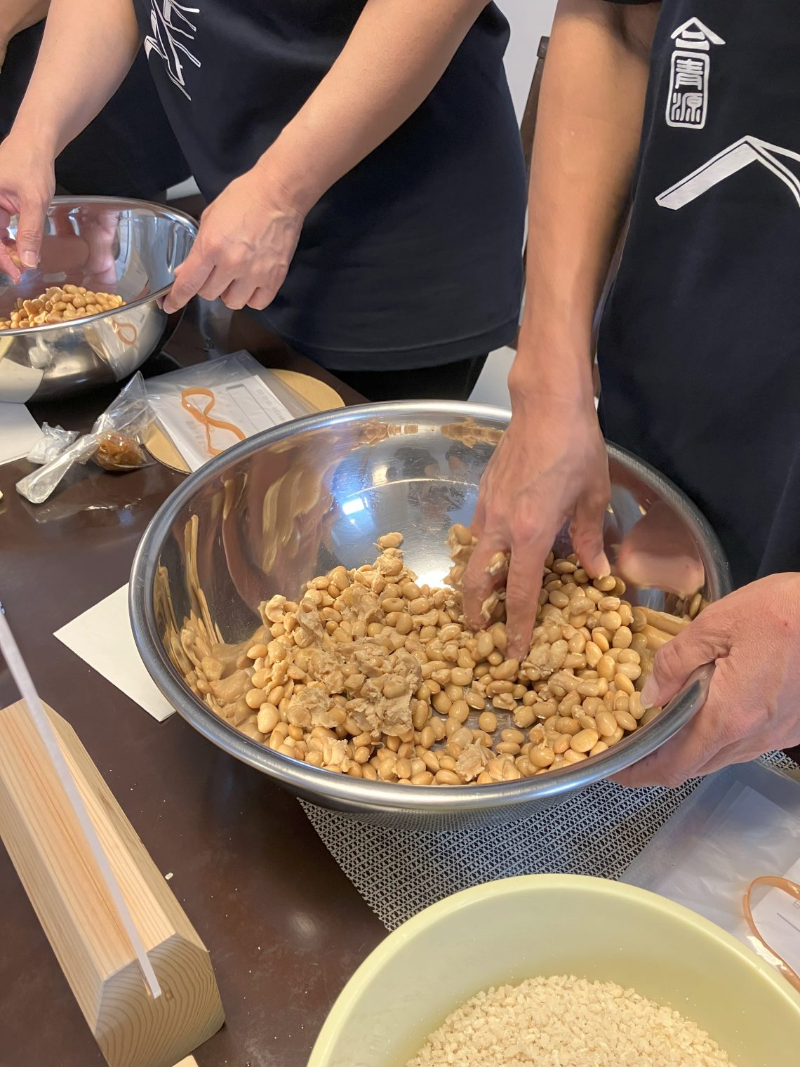 みなさま初めての味噌作りで、麹と塩を混ぜて、大豆をつぶして…と、とても興味深そうに、楽しく作業をなさっていました。